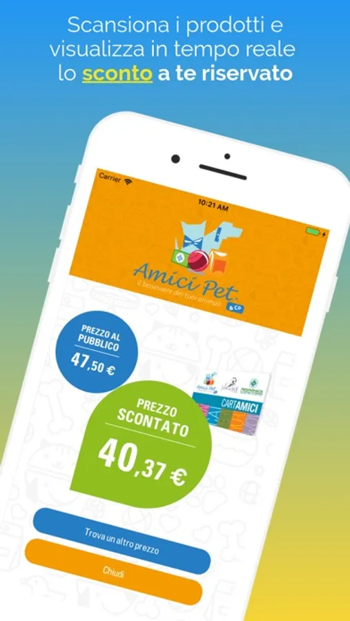 • scansionare il codice a barre dei prodotti per vedere in tempo reale lo sconto a te riservato grazie a CartAmici;
