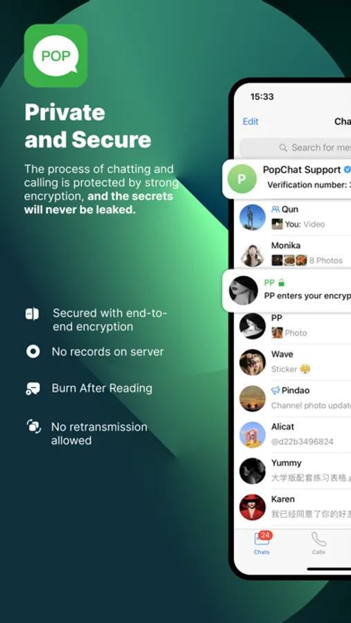 • POP is a pure instant messaging - simple, fast, secure, and synced across all your devices.