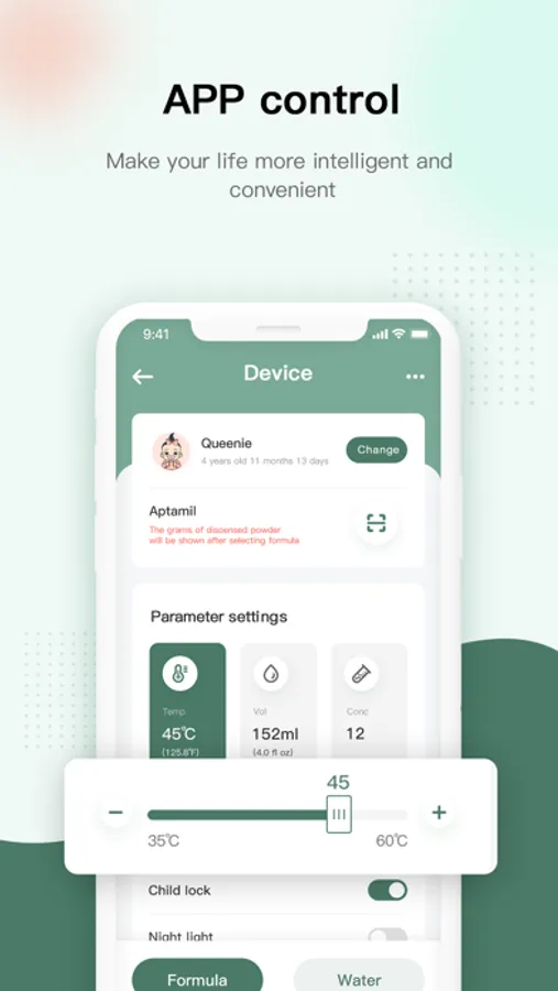 With the help of Burabi Smart Formula Milk Maker,users can get a bottle ready in 8 seconds by pressing one button. Designed with the MCU chip, the machine is able to identify 3650 types of formula information, and to adjust formula concentration and temperature automatically, meeting babies’ needs.