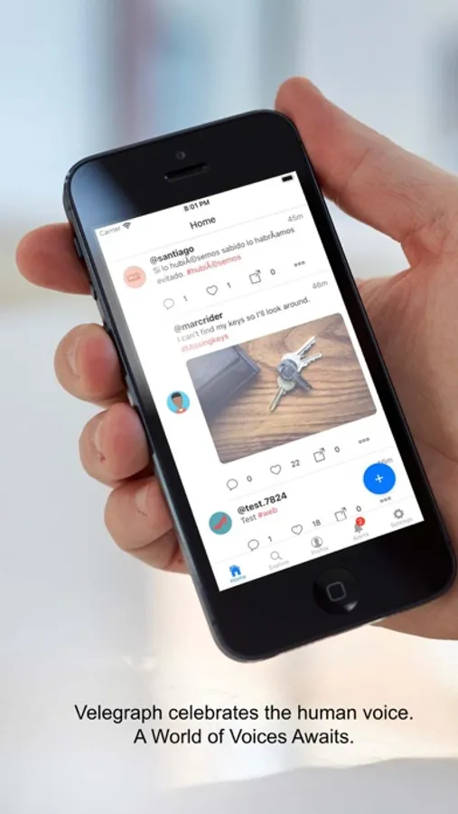 Unlike tweets, Velegraph thrives on short, transcribed audio posts. Imagine tweets you can listen to, retaining the familiar visual text format of tweet. Each post is packed with the emotional power of the human voice.
