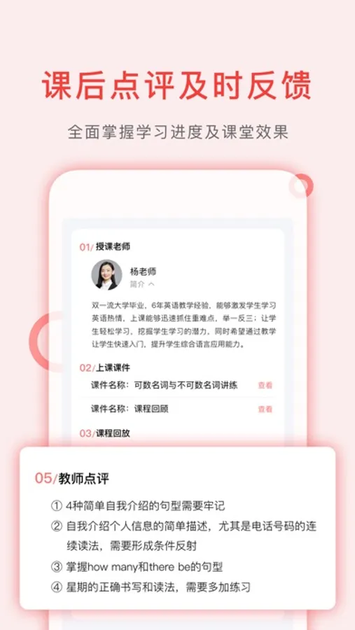 学习结束后,老师会进行专项小测评,以巩固所学知识点,并帮助学生将所学内容转化为实际能力。我们鼓励学生举一反三,培养他们的学习思维和解决问题的能力。支持课程回放,可反复观看,帮助学生随时进行二次巩固。