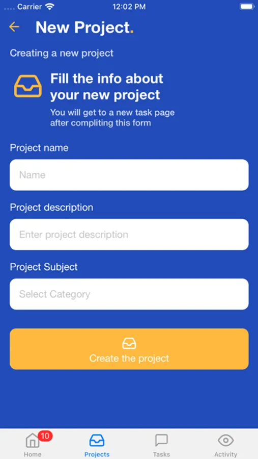 - Create Project with category and name.