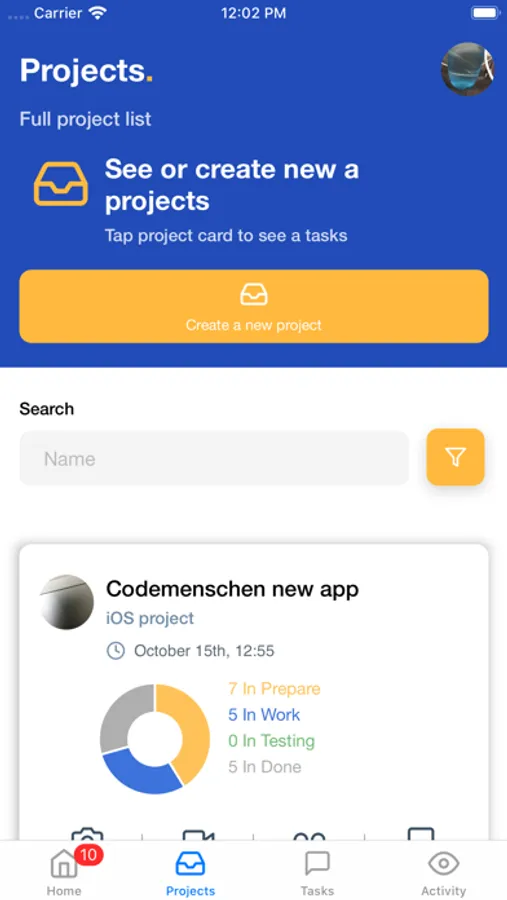 This app is for the project management with following features :