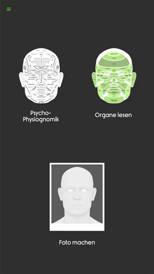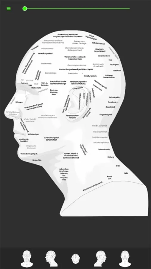 Die praktische Psycho-Physiognomik App für unterwegs mit den fünf elementaren Ansichten des menschlichen Kopfes unterstützt Sie bei der Gesichtsdiagnose: