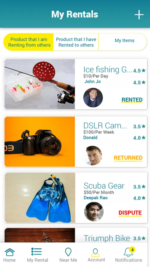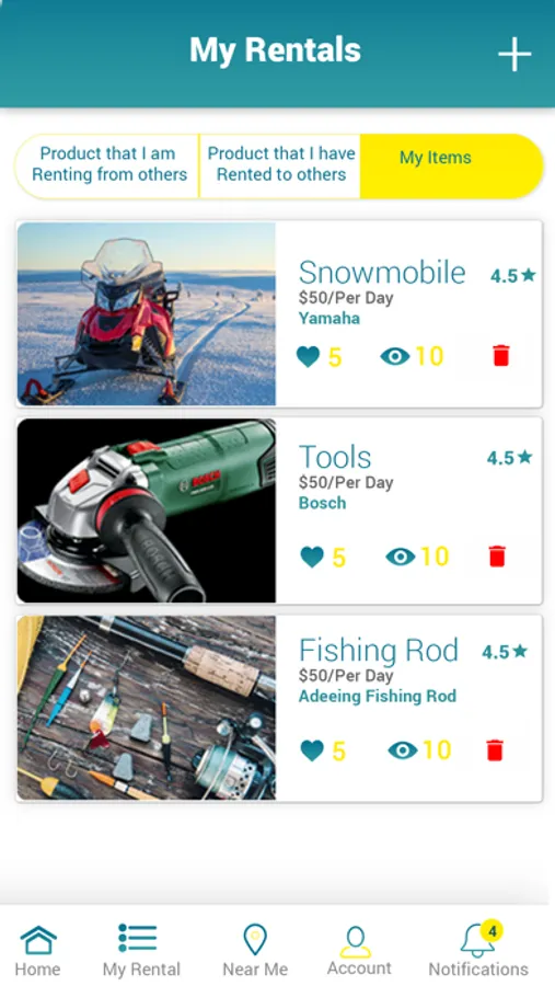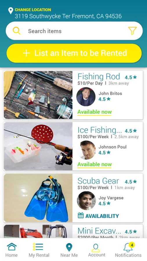 It’s easy to register and add your items you would like to rent or register and rent any item you need.