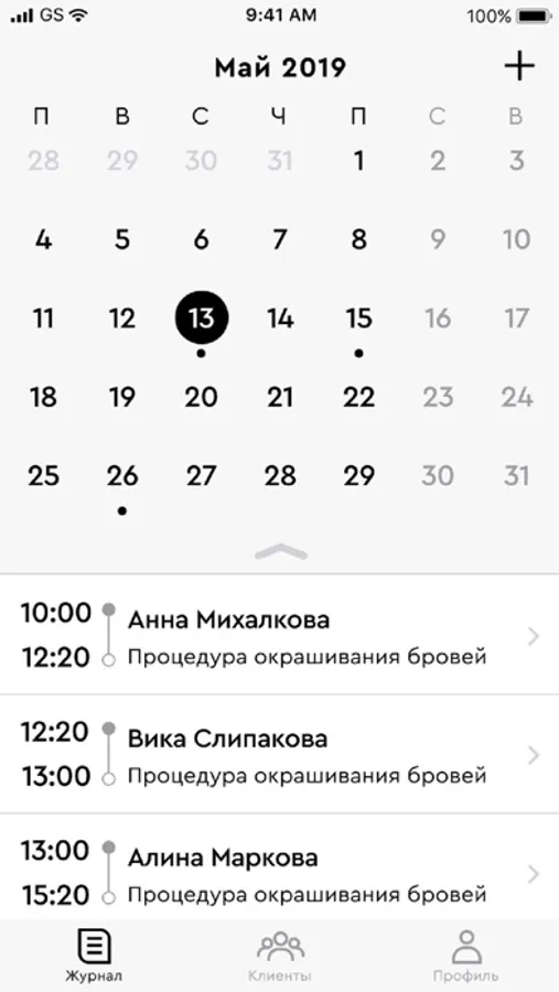 Записывать посещения и планировать будущие визиты клиентов с учетом точного времени.
