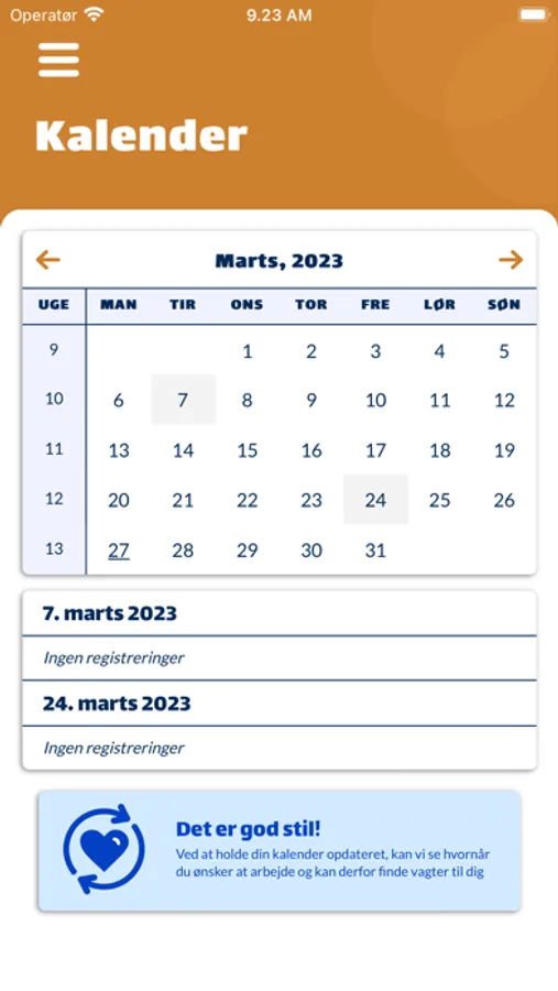 Med et enkelt klik kan vikaren indikere at vagten påbegyndes eller afsluttes. Svarer til muligheden i vores iPad app.