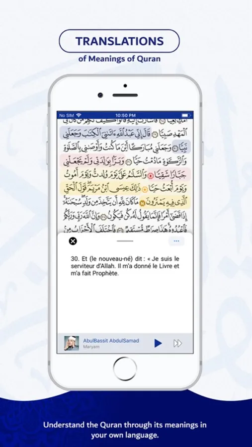 7- Listen to Audio Translations: First app to offer audio translations of the meanings of the Quran in several languages.