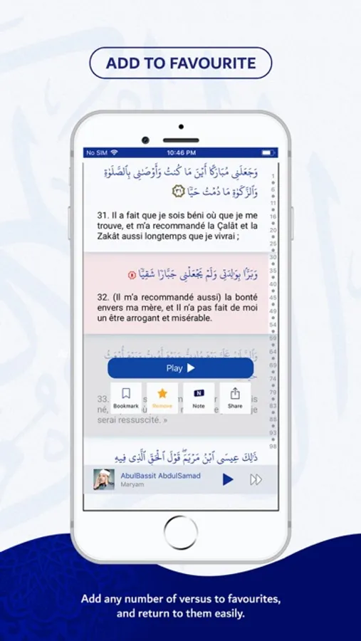9- Bookmarks & Favourite: add a bookmark to start from where you left, and add any number of versus to favourites, and return to them easily.