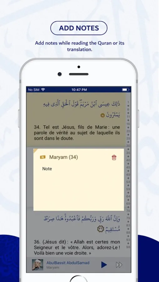 10- Add Notes: Add notes while reading the Quran or its translation.