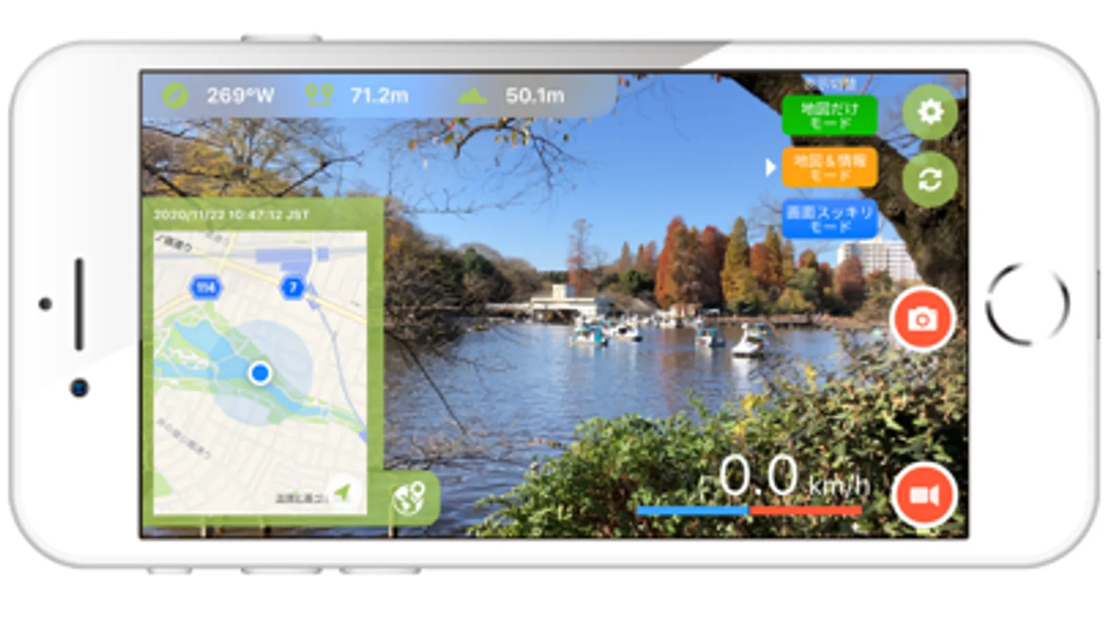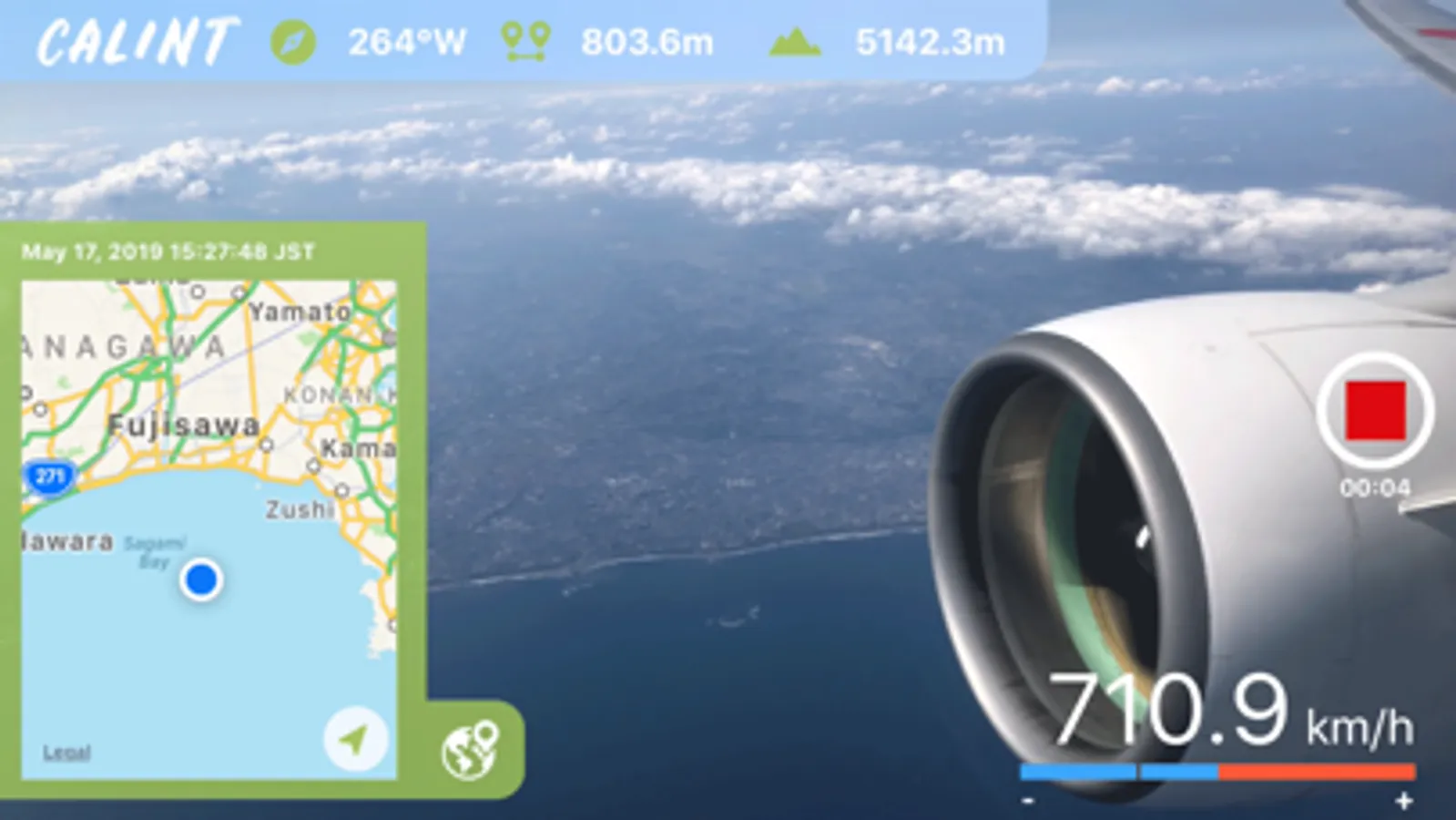 Just tap a red record icon to start recording, then CALINT starts recording your location, traveling speed, altitude, and distance travelled. It also calculates which direction the camera is facing so you can use it as a dash cam, too.