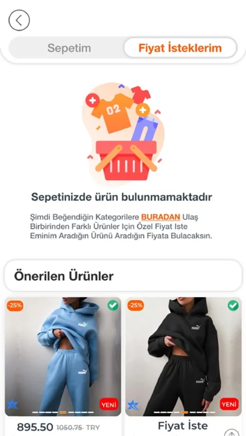 Sana verilen o fiyatı kabul edersen artık fiyat iste butonu sipariş vere dönmüştür siparişini verebilirsin