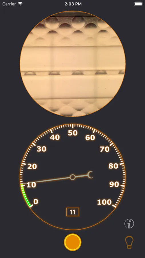 In order to take measurements, you need to bring the phone to the measured source and press the start button. The measurement results will be updated in real time, the arrow will show the ripple factor, and the scale will be filled from green to red. For best results, keep your phone straight. If the phone is not fixed, an image of the shaking device will appear in the lower left corner of the screen and the readings will be very different from the actual ones.
