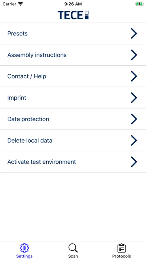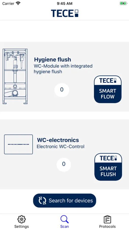 The TECEsmartcontrol app makes it easy for the fitter to quickly and easily set up the TECEprofil toilet module with integrated hygienic flushing as well as the TECEsolid toilet electronics and to adapt them to individual requirements. TECEsmartcontrol can be connected intuitively to the hygienic flushing station or an electronic flush plate via Bluetooth.