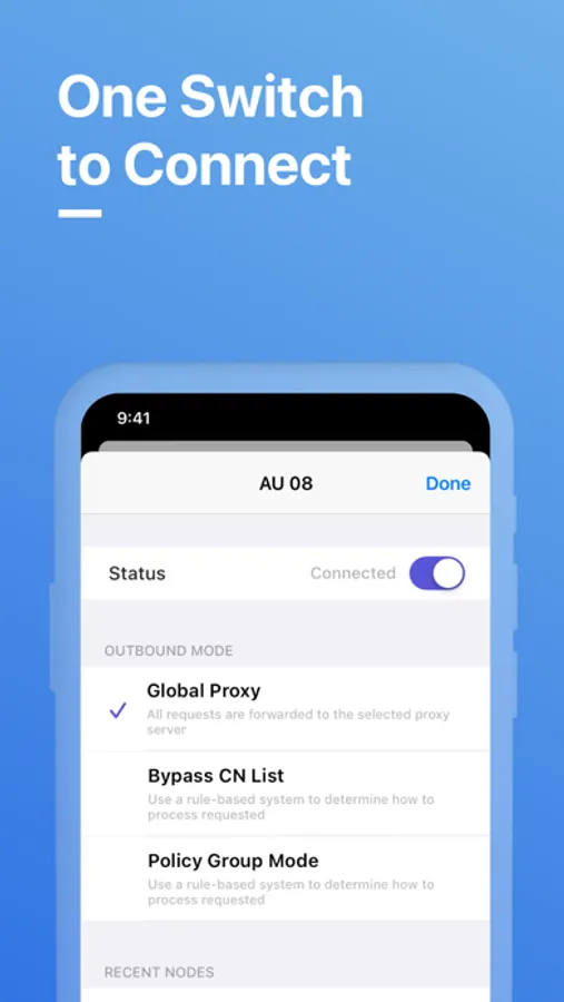 - Easy to use — just tap the connect button.