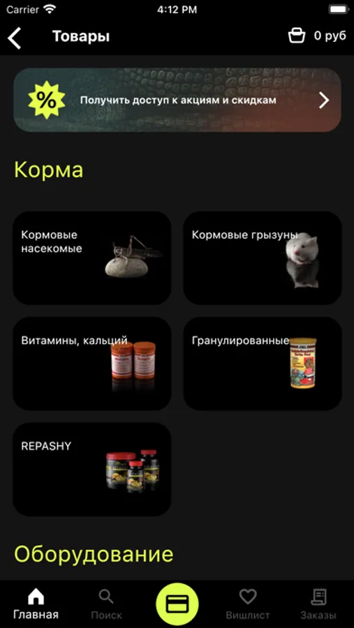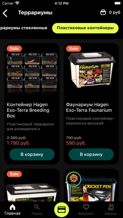 Каждой рептилии, амфибии или членистоногому необходимо создать подходящие для жизни условия. В этом поможет разнообразное оборудование для террариумов, купить его можно непосредственно в нашем приложении.