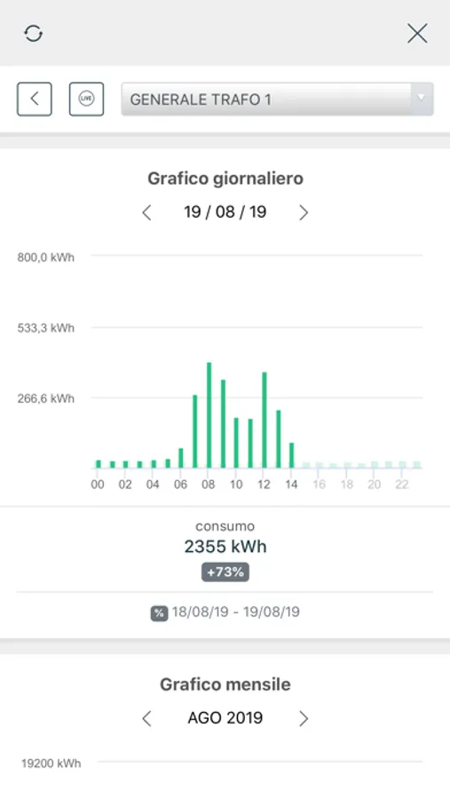 Ogni QR code corrisponde ad un dispositivo. Tutti i QR code scansionati sono disponibili attraverso una comoda lista che troverai nella pagina iniziale dell'app. Premendo su uno dei dispositivi, potrai visualizzarne tutti i dati live e l'intero storico di produzione e/o consumo.