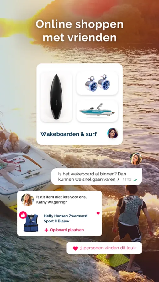 Weet je niet zeker of die ene broek wel leuk is? Voeg vrienden toe aan je shoppingboard, zo kan je met ze chatten en kan je tot de juiste beslissing komen. Ook kunnen je vrienden, als je daar toestemming voor geeft, andere items op jouw board plaatsen. Vind je een item van een ander superleuk? Je kan het item liken. Vind je het hele profiel leuk? Dan kan je deze persoon ook volgen. Blijf via notificaties altijd op de hoogte met wat er gebeurd binnen je netwerk op Hatsa!
