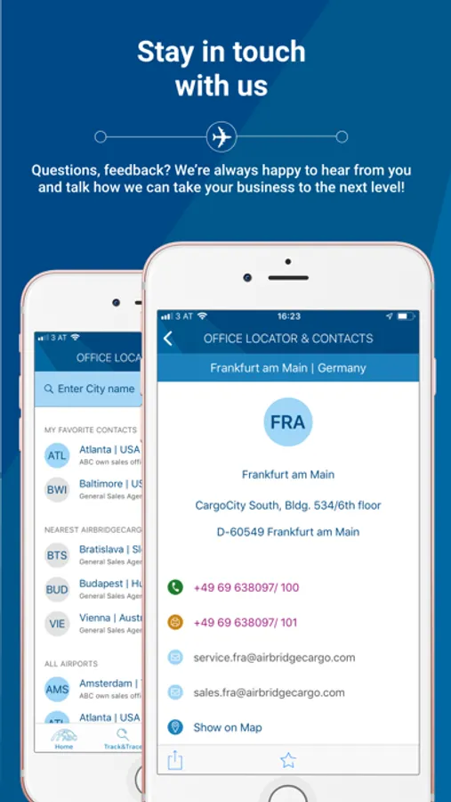 Download the new AirBridgeCargo App and benefit from numerous features our application has to offer.
