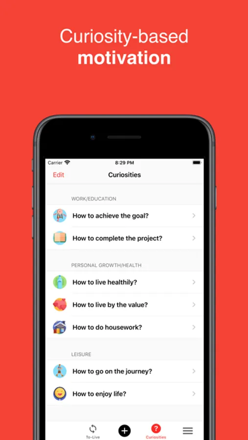 To-Live app is free to use with the limitation of 3 curiosities. We offer Premium To-Live subscription plans for unlimited curiosities - unlimited life possibilities.