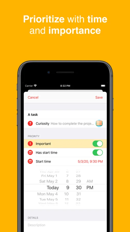 You can only truly be happy in the present, because only the present is real. We encourage you to stay in the present, focus on the task at hand (Showtime) and fully live it. When using in combination with Curiosities feature, a normal task in your to-do list can be turned into a meaningful moment right now, in the present.