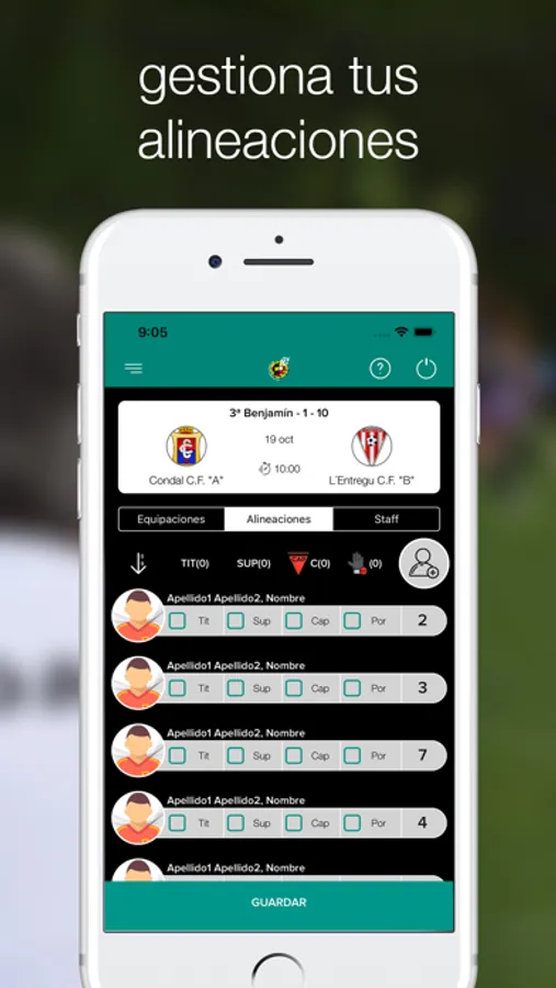 RFEF Delegados te permite seleccionar la equipación con la que quieres jugar tu próximo partido. Además podrás elegir la alineación del partido y agilizar los preámbulos para que el balón eche a rodar cuanto antes.