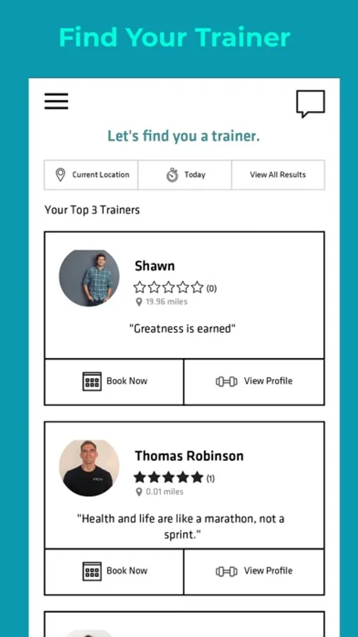 - Match with trainers and clients in your local area