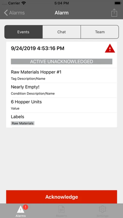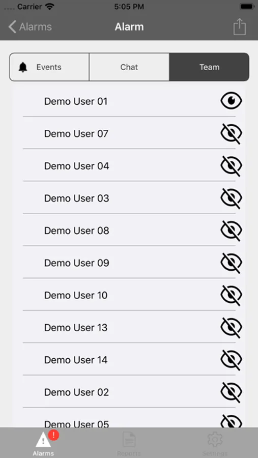 - Communicate with Team members within the context of specific Alarms using built-in Chat