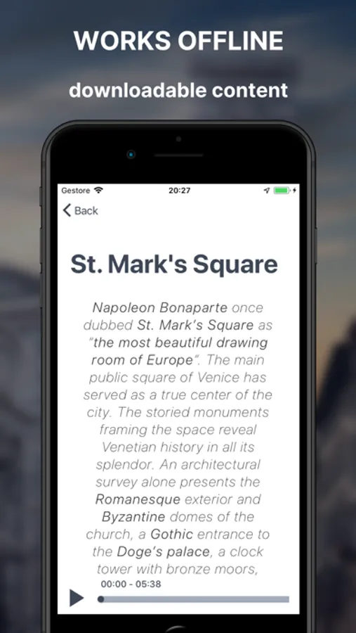 Complete: with over 60 attractions, discover wonders like the Bridge Of Sighs and the Bell Tower of St. Mark. Each attraction has a detailed and engaging audio guide.