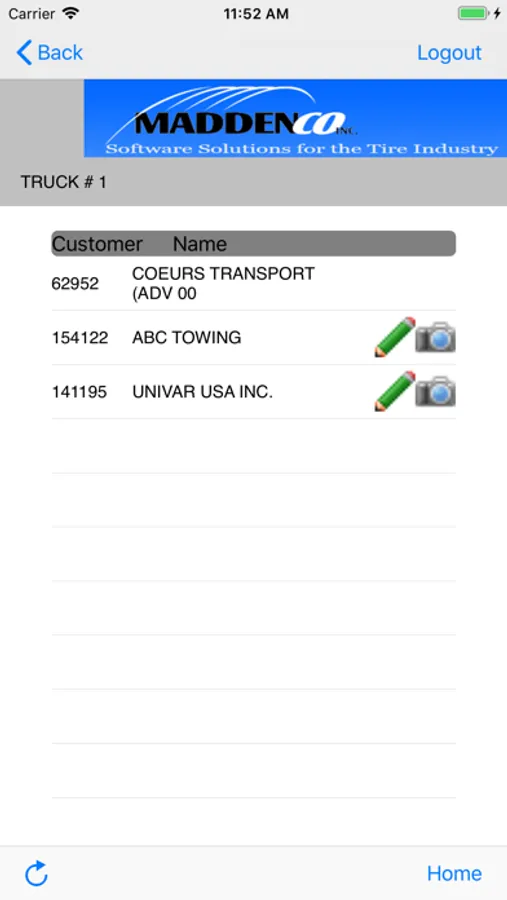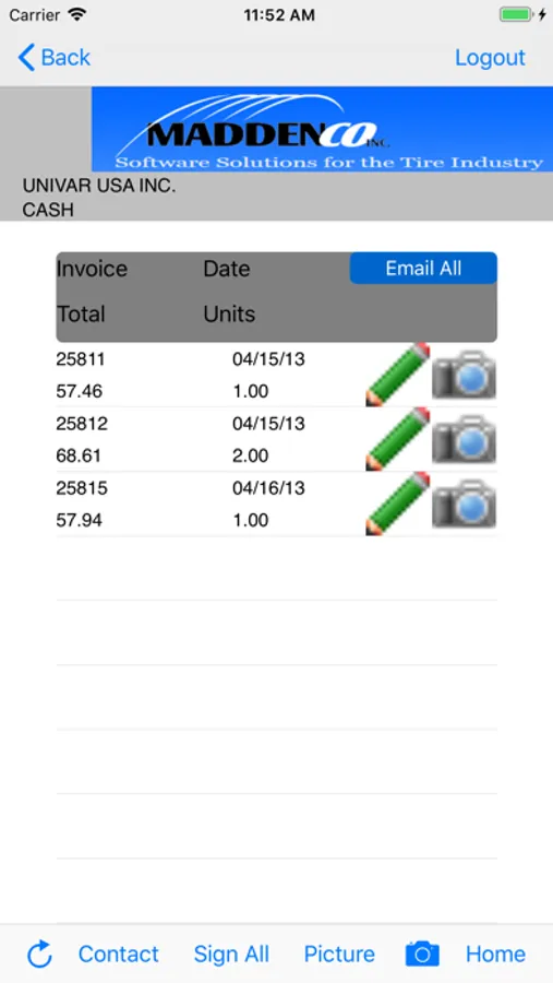 This App written by MaddenCo, Inc. the writers of "The Tire Dealer System" allows the Dealer's driver to capture a signature at the point of delivery. Date and time are captured. Signatures are associated to invoices and can be emailed with the invoice.