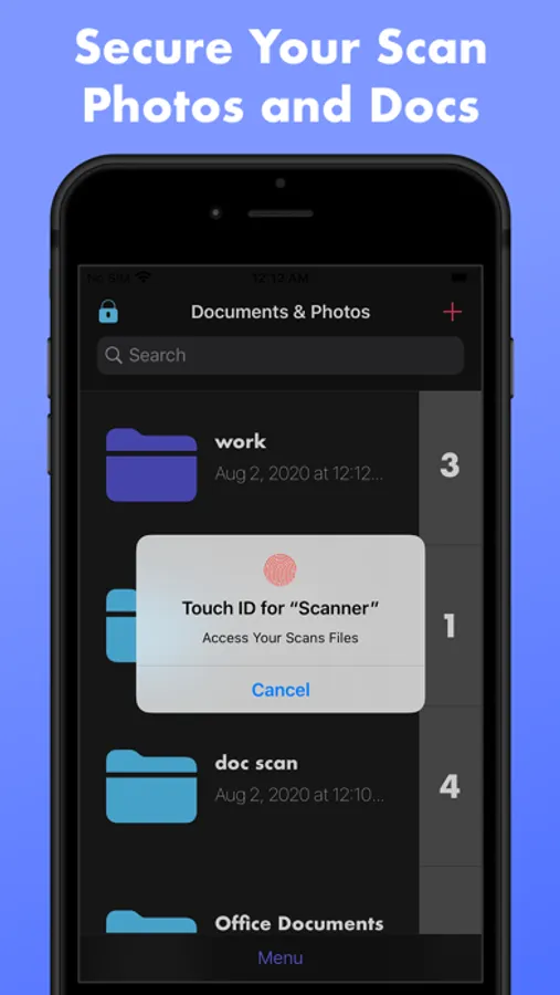 We have all the features you need from scanning multiple documents and photos and save it locally securely with a password Touch ID or Face ID.