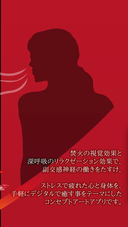 焚火の視覚効果と深呼吸のリラクゼーション効果で、