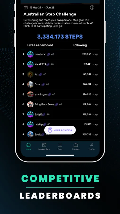 Push yourself with monthly Challenges & compete with others on steps, gym checkins, LIVE STREAM Video challenges and workouts.