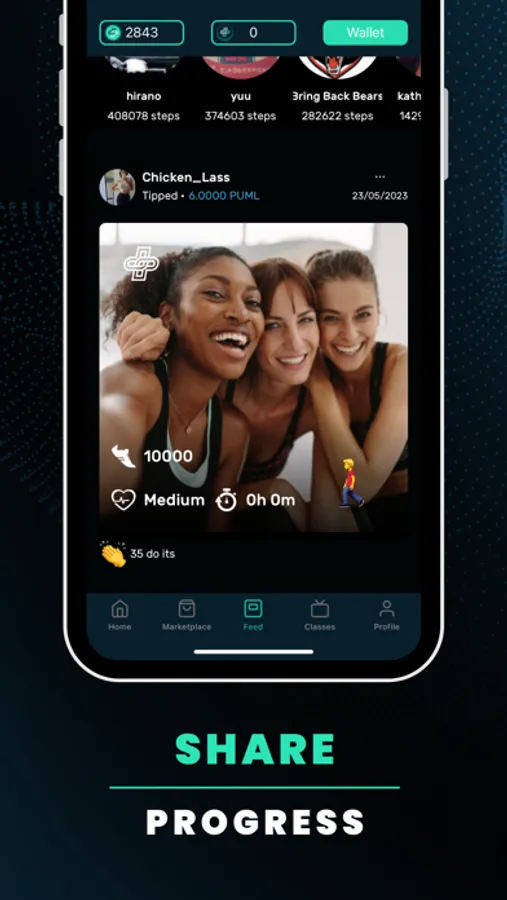 Completely healthy challenges and earn rewards. Redeem them on health and fitness products and services right within the app. Rewards include fitness products, services, gift cards and crypto such as Bitcoin (BTC) and EOS.