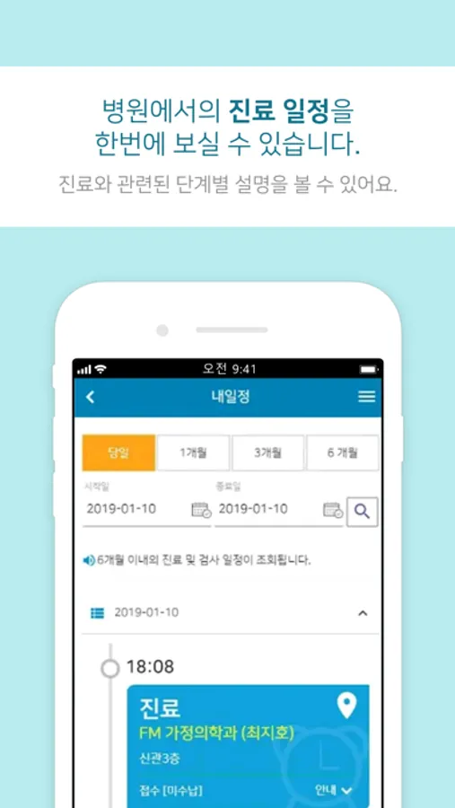 병원에서의 진료 일정을 한번에 보실 수 있습니다
