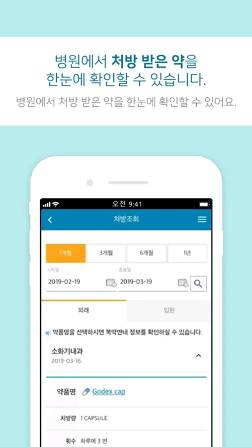 병원에서 처방 받은 약을 한눈에 확인할 수 있습니다
