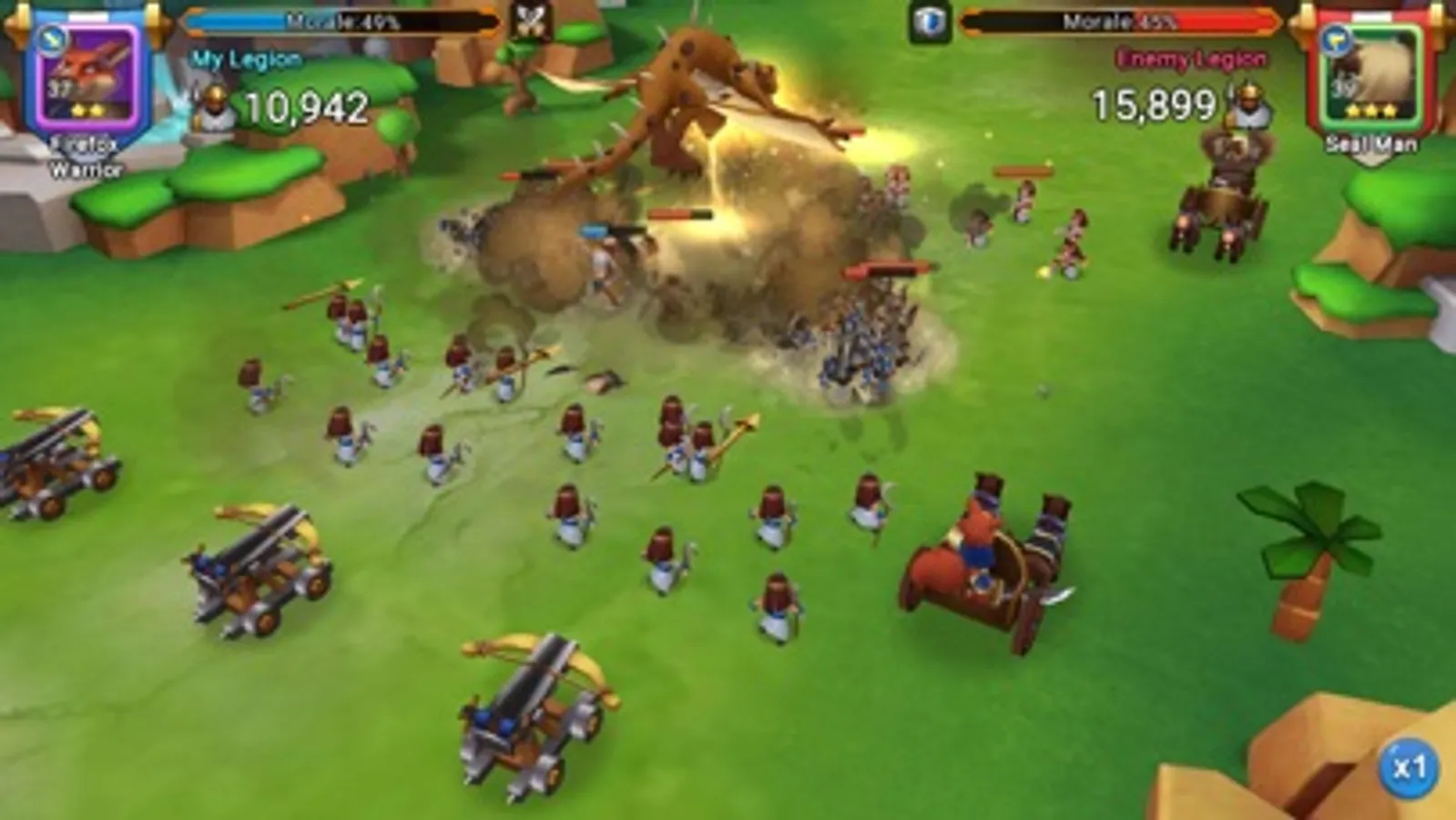 30 Heroes each with different professions and skills, collect, recruit and appoint your heroes to the most suitable role for each internal affairs to maximize the profit! Have your commanders upgraded, and arm them with crafted gears, you’d even get greater boosts and rewards! You can also interact, attack and capture your enemy troops commander.
