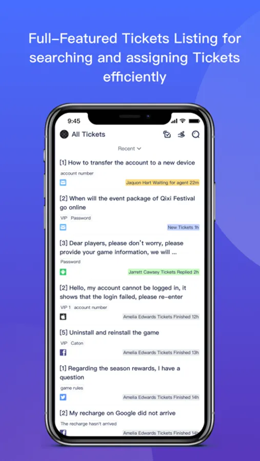AIHelp supports integrating messages from multiple channels like Mobile App, Wechat, Facebook etc. Into one platform. At the same time, pictures and emojis are also available. Besides, by using AIHelp Mobile App, you would not be missing any messages from users anytime, anywhere. Customer agent could deal with their work that cloud only be done on PC just by tapping on the mobile. Improve work efficiency and solve the problems for users immediately.