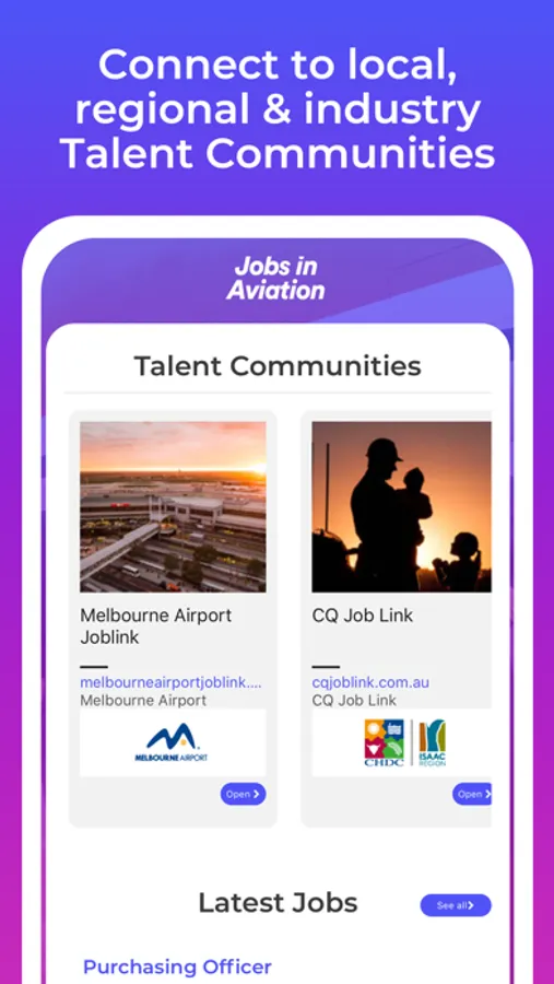 Jobs in Aviation connects you to local, regional, industry based Talent Communities so you can access exclusive employment opportunities from employers. Talent Communities also connect you to work, education, events, support and information for employment options and career pathways of interest.