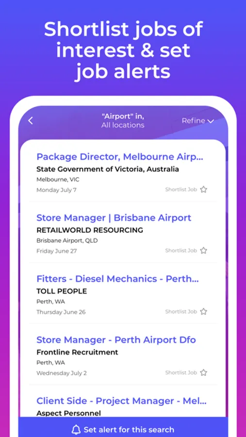 • Register to create a personal shortlist of jobs and apply.Download the Jobs in Aviation App for access to all of Australia’s aviation industry jobs and careers.