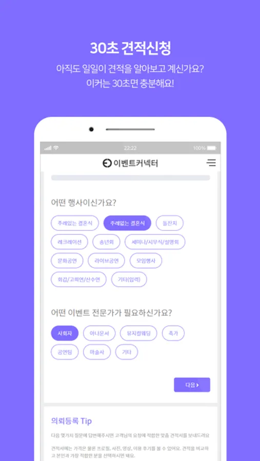 이제 이벤트커넥터에서 30초면 신청할 수 있어요.