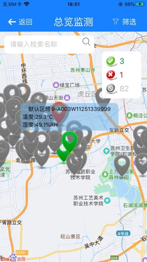 在地图上查看设备信息,可以根据设备名称进行筛选,可以调节地图查看设备信息