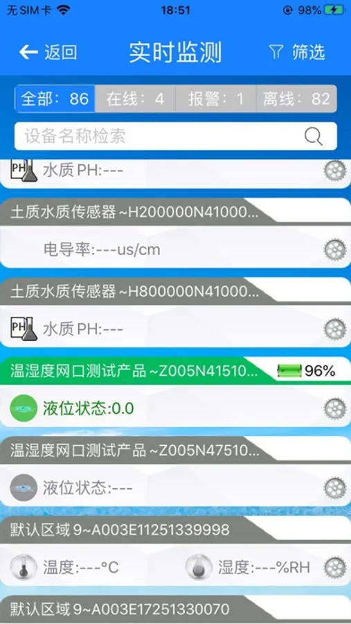 实时查看设备的信息,设置设备报警上下限,可以点击查看设备详情信息