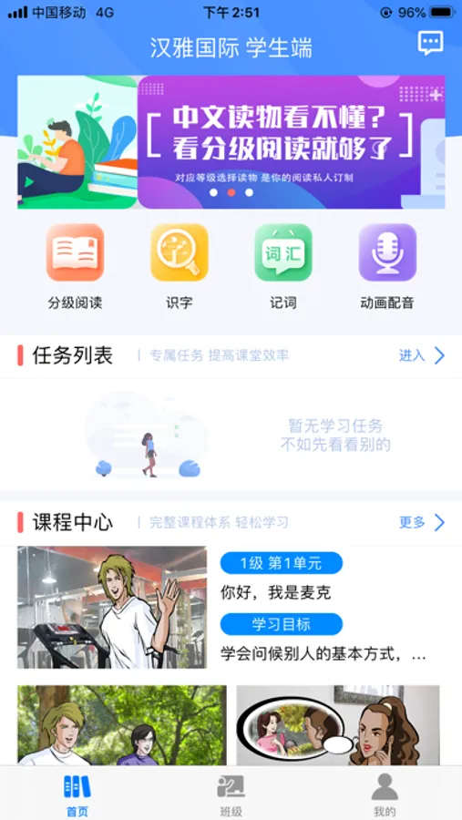 “汉雅国际”以打造“智慧语言学习空间”为目标,设计简单明了、易操作。围绕“发布—练习—评价—统计”四大主要环节展开,支持学生从课前预习、课中互动到课后复练的完整学习过程。
