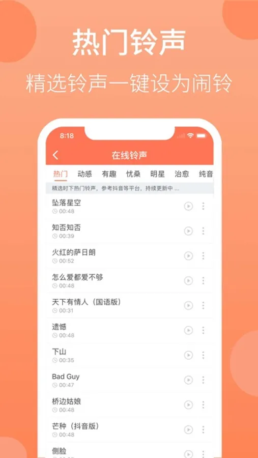 热门铃声:精选热门铃声,还有明星喊你起床,起床更有动力