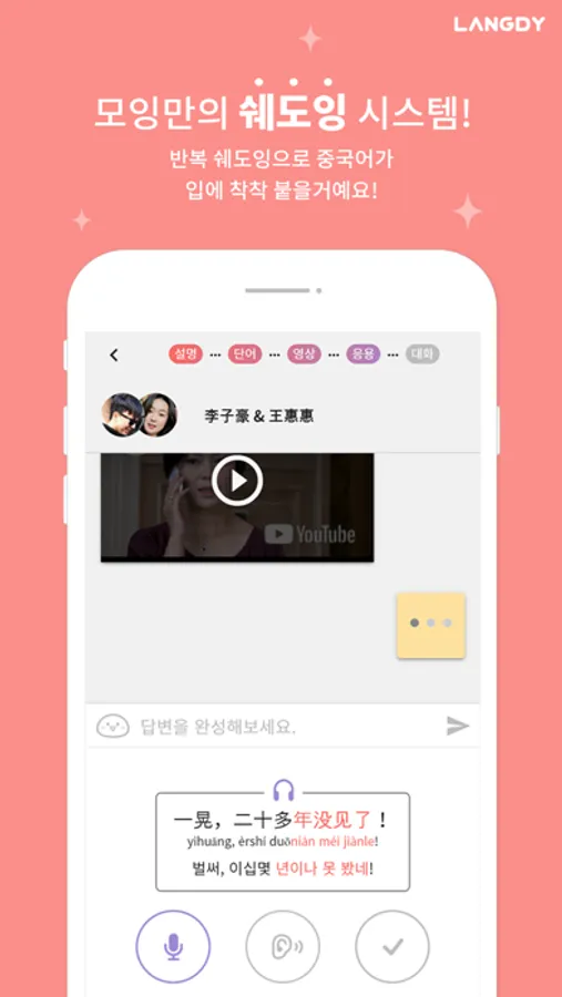 모잉만의 쉐도잉 시스템으로 진짜 소리를 익혀보세요!