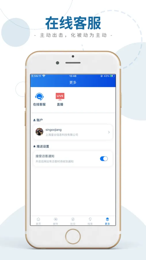 4, 在线客服:网站在线客户及时通知,主动发起沟通