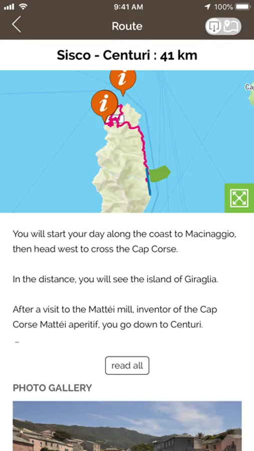 Whether you have booked a walking holiday, cycling holiday, motorcycle or car tour, you will find all the practical information on the app to make the most of your vacation.