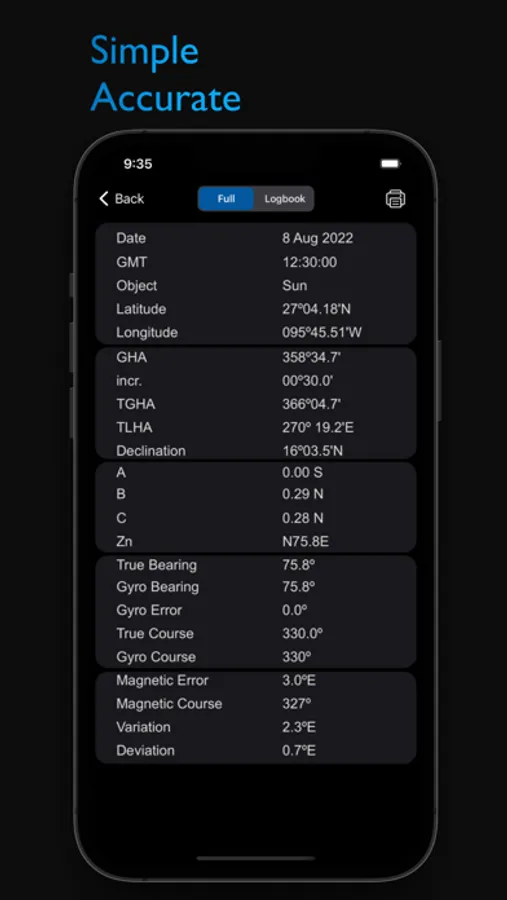 The app runs offline and all calculations are done within the app using precise and sophisticated algorithms.