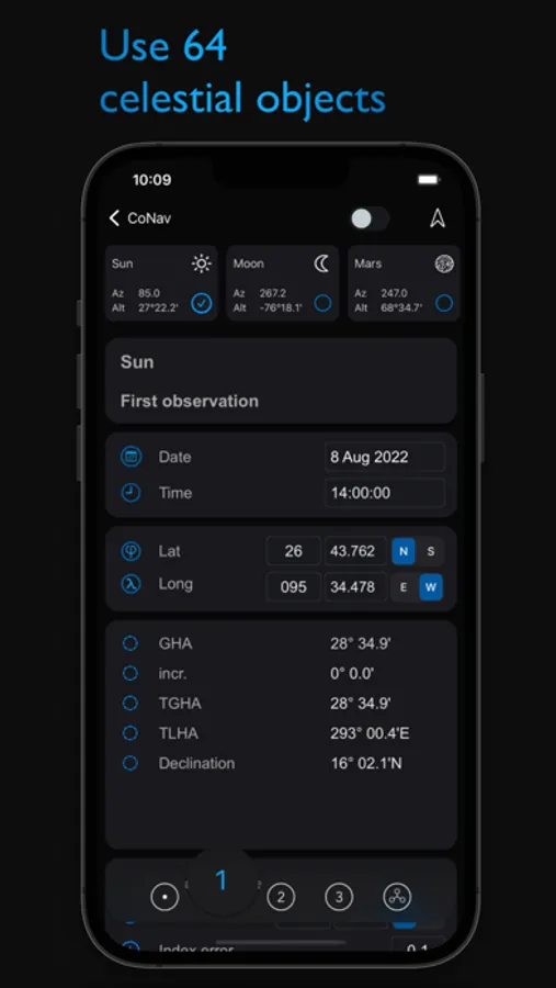 Hiding celestial objects below the horizon is available.